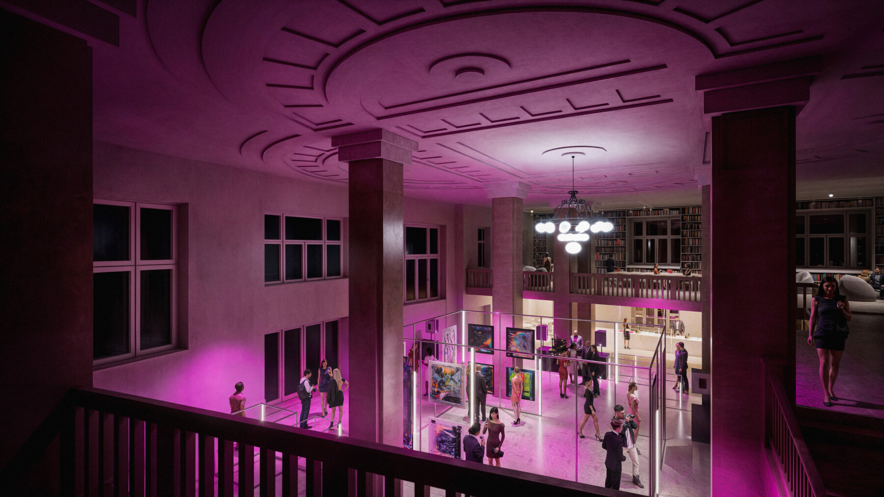 novonavrhovanú galériu na najvyššom podlaží. Pôvodné trojramenné schodisko
