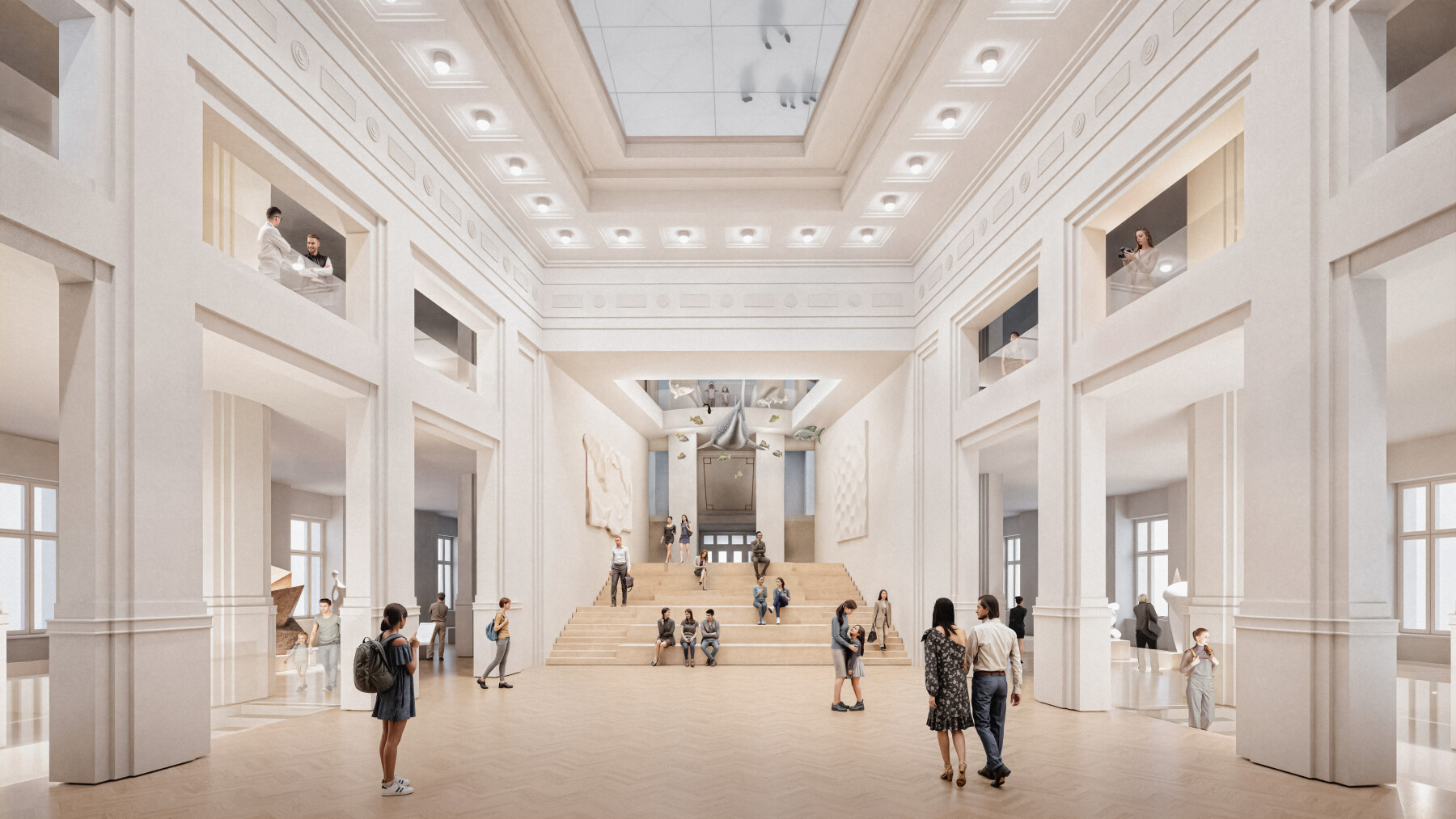 Zásadným vylepšením prechádza pohyb návštevníkov. Vďaka obnove historických a vytvoreniu nových prístupových bodov. Západo-východná os/ Hlavná verejná pasáž vedie od súčasného vstupu až po novú čitáreň, knižnicu a kaviareň na Múzejnej ulici. Návštevník prechádza cez pobytové schody priamo do centrálnej haly, Zimnej záhrady, ktorá slúži ako komunikačný uzol pre všetky výstavné podlažia. Severo-južná os/ Nová priechodná pasáž na úrovni ulíc spája Vajanského nábrežie s Fajnorovým nábrežím. V nadväznosti na pôvodné plány architekta M. M. Harminca prináša priame napojenie na kaviareň a centrálnu halu. Zabezpečuje plne bezbariérový vstup, šatne a zázemie. Dvojica nových bezbariérových výťahov v svetlíkoch zabezpečuje plynulý pohyb návštevníkov od suterénu až po galériu na 4. NP.